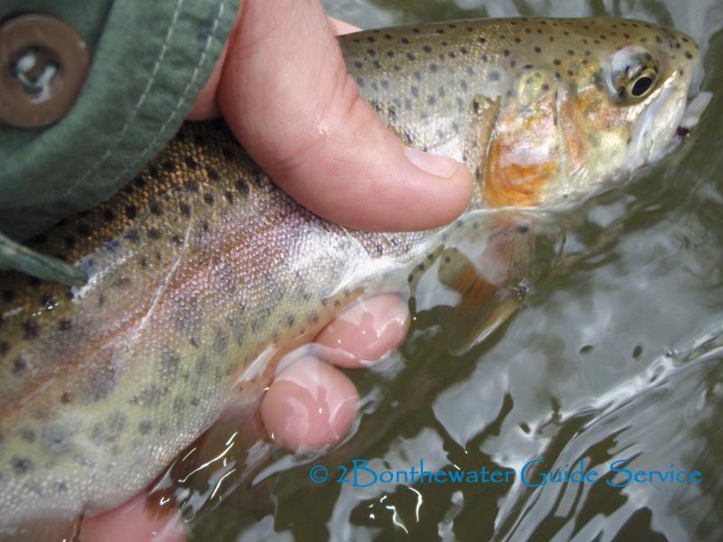 Spent 2 days out with clients. Many wild browns were landed witha few rainbows and stocker browns in the mix. Most of the action was on the surface with a few fish taken by nymphs. A few bugs in the air toward evening.The forecasted rain will certainly help maintain nicewater levels on OleyValley streams.