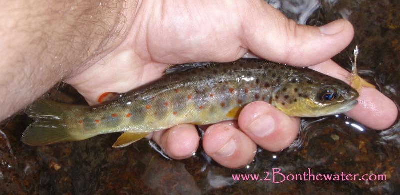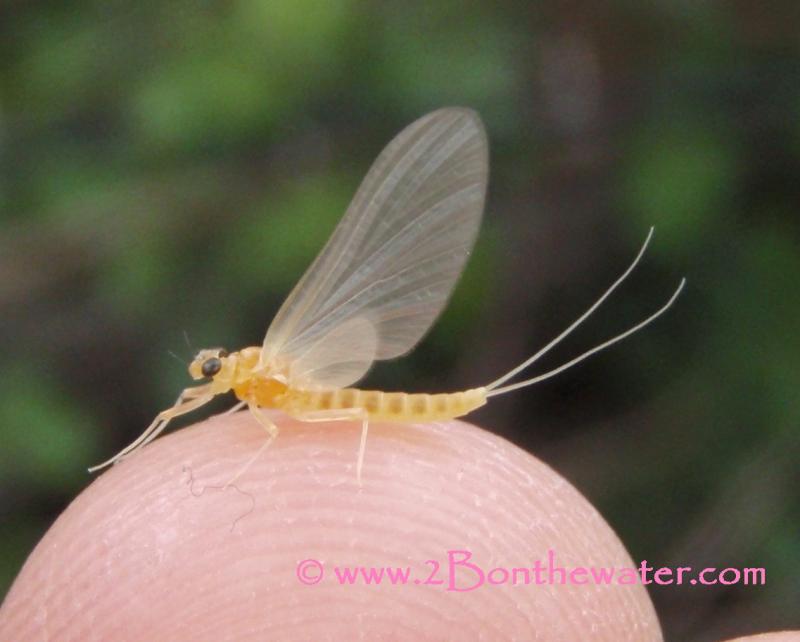 Well, spent a few hours chasing some wild trout. The first stream was like the dead sea. It was like the fish were waiting for something. I did roll a large wild brown on a BH caddis larva. I hit another section of water and started to toss a caddis around. Then I noticed a yellow bug scurrying off the water. I busted tail to catch the guy. Cute little guy. Took a picture or two and off it flew. Then I moved my way upstream, landing 2 browns in short order, then I noticed another yellow bug. The wings on this guy were still wet !!! So, I switched over to an emerger pattern and the fish took notice. It was fun. But, I had to head back to the house and get the little league practice in order. With the skies being black, trees swaying and rain in the immediate forecast. I cancelled baseball practice. I'm sure all my little rugrats disliked that decision as much as I did. So, yellow bugs anyone??
