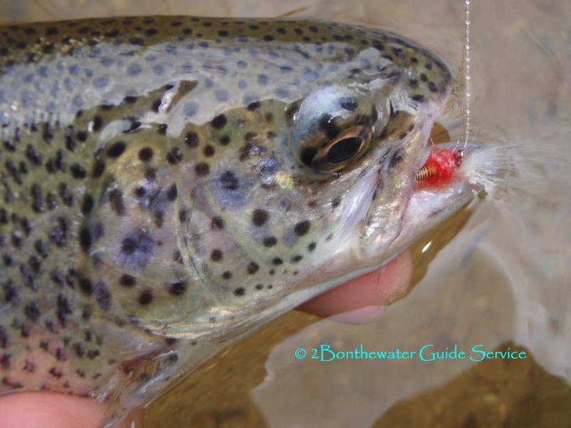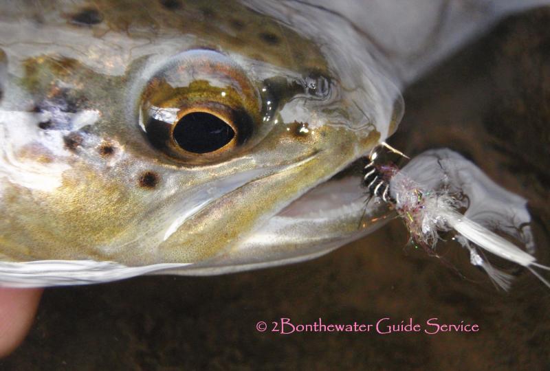 I have been sent a nice report with pics that a few trout are still swimming about and they are willing to eat nymphs, buggers........and how about a: GREEN WEENIE !!!!