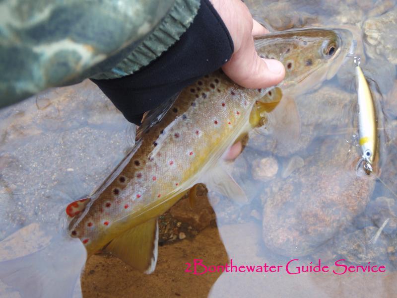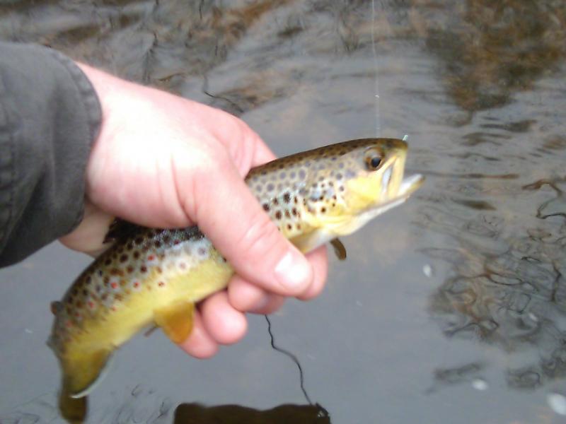 Cold and rainy day, but I had about 2 hours to myself so I hit a local Class A water. I was tossing stickbaits and the DSS streamer and managed a few trout and some fallfish. Fishing SLOW was the ticket.