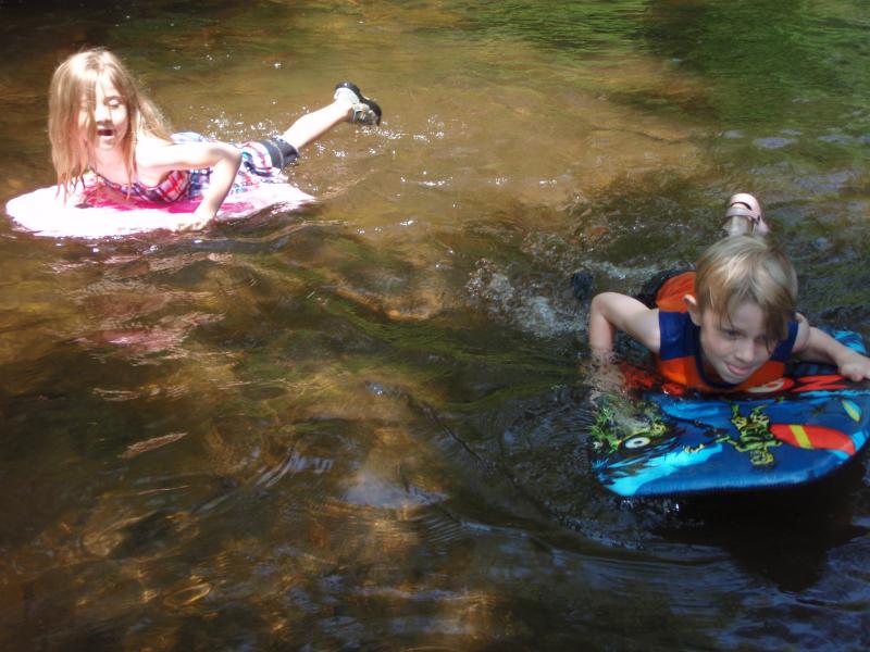 Took the rugrats fishing for a few hours. They had a great time landing rock bass, redbreast sunfish, bluegill and smallmouth bass. Since it was so HOT, the kids went swimming in the creek. What a great late morning/early afternoon. Vin landed a nice 14.5 inch smallie.