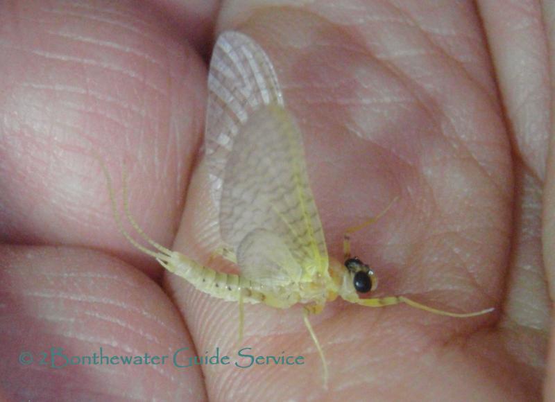 Made itoutto the Manny for a few hours tonight. Made a few casts and then I noticed a bug. A nice bug. A neat bug. As for fishing, not much doing again. I know I have plenty going on inmy life and concentrating is hard, but my goodness-- I don't think I have ever had a dry spell like this. Not much going on rise wise. I hit one spot and nothing doing. Then to another spot and found a cloud of Hendrickson spinners. Not one fish rising to the spent bugs. I waited and waited, nothing happened.I even made an effort to stop at a likely spot for fish taking spent spinners. I stood there, in the darkness and waited and waited. Not one rise. Tisk Tisk Tisk........ The fish are there though !!