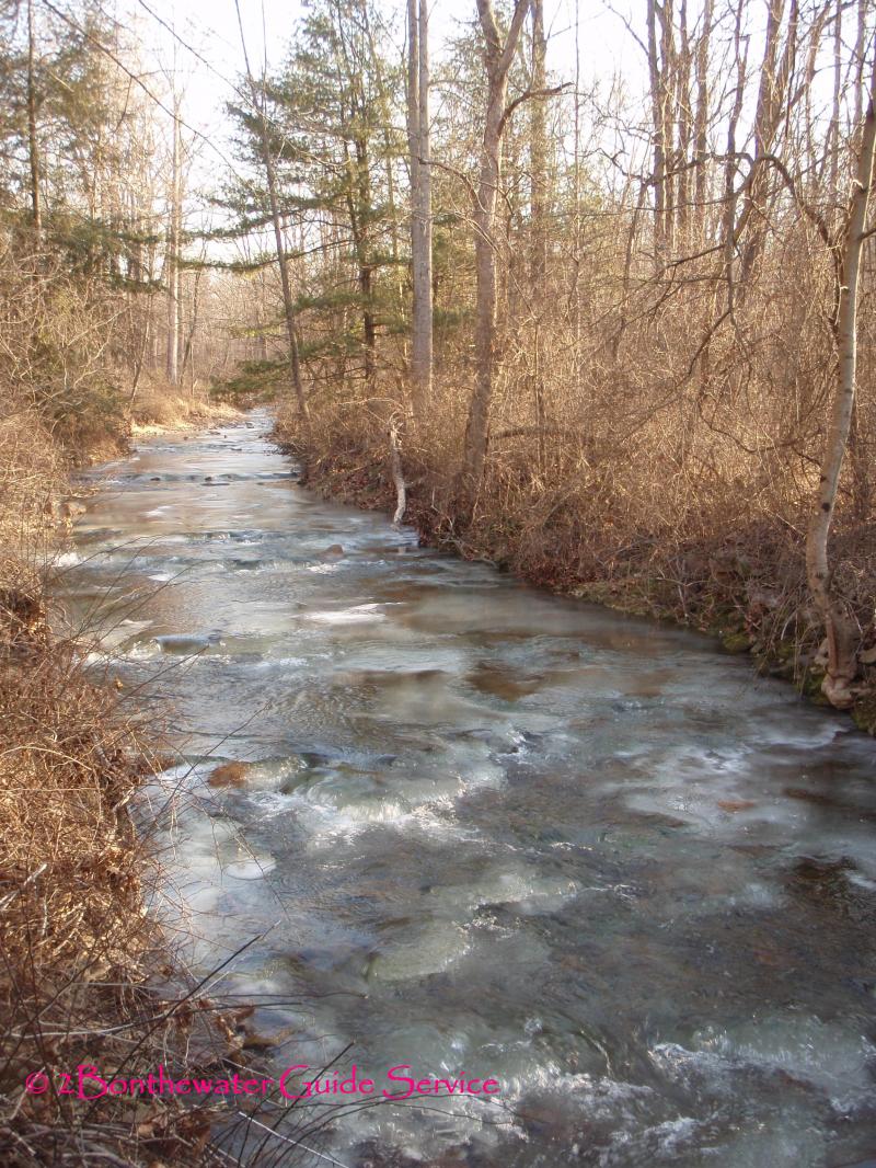 Happy Valentines Day !! Spent the morning traveling around the area. Antietam Lake is toast--- unless we get a serious cold snap, no more ice fishing there. Antietam Creek had a great flow to it. Spent a hour or two in the afternoon chasing some wild browns. Landed 3 fish and one on a dry Little Black Stonefly. The other two fish took a black beadtail stonefly nymph. It was a beautiful 40-degree day. The water was FREEZING !!!