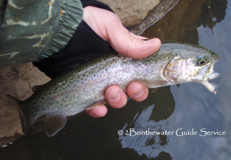 The past week was filled with water and lots of it. The creeks are at fishable levels. Hot fly over the past 2 weeks has been MOTHRA. If you don't know what a MOTHRA is, you need to order a few !! The fly induces some very dramitic strikes. I wouldn't be On The Water without a few of them in my pocket.