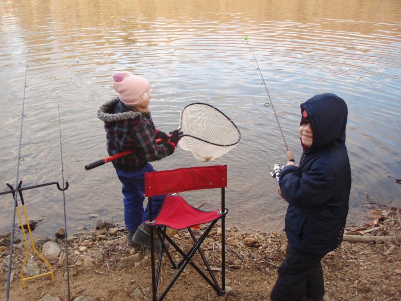 Another family and ours headed out to Antietam Lake to fish opening day with the kids. We were able to get the spot we wanted. The wind was brutal and the temps were on the cold side, but all 4 kids sucked it up and had a great opening day of Trout Season. This was the first Trout Opener for all 4 children. Most of the fish were Brook Trout and the one Brown Trout that was landed by my kids buddy, was 16-inches. Snacks, Hot Chocolate, Power Bait and Night Crawlers under a float. Great start to the new Trout Season.