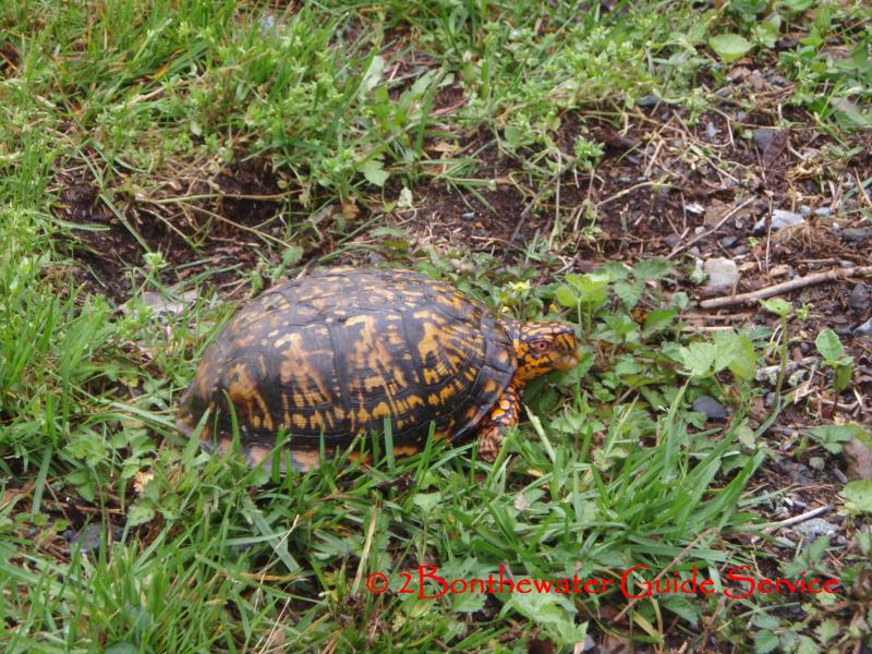 The recent rains have left the creeks no worse for the wear. Waters are fishable with Sulphurs and Cahills making an appearance. Fishing a dry caddis has brought many trout to hand over the past two weeks. Turtles are out and about--so keep your eyes open as they cross our roads to find a mate.